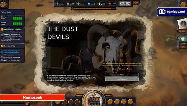 در این داستان، جمعیت جهان به سرعت در حال افزایش است، و بی‌توجهی به محیط زیست و تخریب منابع طبیعی منجر به کمبود منابع آبی و فروپاشی تمدن انسانی شده است. شما به عنوان یک بازمانده از این آخرالزمانی، وظیفه دارید تا گروهی از بازماندگان را هدایت کرده و شهرک‌های جدیدی را بنا نهاده و مدیریت کنید. اما در جهانی که آب به طلای جدید تبدیل شده و هر تصمیم می‌تواند تفاوتی بین زندگی و مرگ ایجاد کند، این کار تنها با تصمیم‌گیری‌های دقیق و استراتژی‌های مناسب امکان‌پذیر است. Homeseek با داستانی گیرا و محیطی متنوع به بازیکنان امکان می‌دهد تا به عنوان رهبران گروهی از بازماندگان، شهرک‌ها و ساختمان‌های مختلف را طراحی و اداره کنند. شما باید تصمیم‌های استراتژیکی درباره موقعیت ساختمان‌ها، تخصیص منابع، بهبود دانش و ماشین‌آلات شهرک‌نشینان و مدیریت امور مختلف شهرک‌ها اتخاذ کنید. از طرفی، بازی دارای دو کمپین جذاب با بیش از 9 سناریو متنوع است که از طریق حالت داستانی، حالت بی‌پایان و حالت بقا ارائه می‌شود و تجربه‌ای طولانی و پرطراوت را به بازیکنان ارائه می‌دهد.