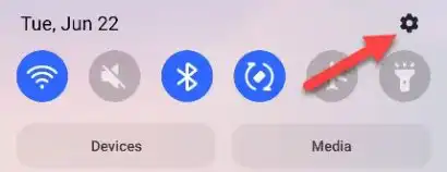 مرحله اول: برای استفاده از حالت تکدستی در گوشیهای پیکسل، دو بار انگشت خود را از بالای صفحه به سمت پایین بکشید تا منوی تنظیمات سریع نمایش داده شود و سپس روی علامت چرخدنده ضربه بزنید.