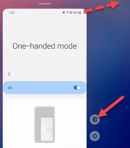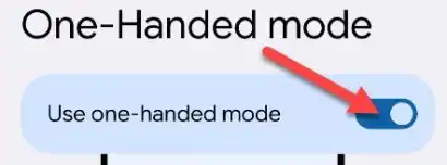 علاوهبر روش گفتهشده میتوانید برای فعالسازی حالت تکدستی در گوشیهای اندرویدی، انگشت خود را از روی دکمه هوم یا نوار ژستهای حرکتی به سمت پایین بکشید.برای خارج شدن از این حالت نیز کافی است همان قسمت را به سمت بالا بکشید یا روی ناحیه خالی در بالای صفحه ضربه بزنید.