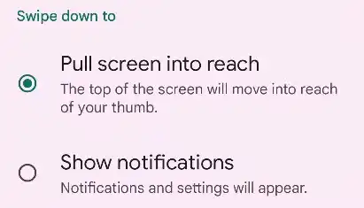 شایان ذکر است که با استفاده از حالت تکدستی در گوشیهای پیکسل شرکت گوگل میتوانید انتخاب کنید که با کشیدن انگشت خود از بالای صفحه به سمت پایین، به قسمت بالایی پنجره بازشده یا نوار اعلانها و تنظمیات دسترسی داشته باشید.