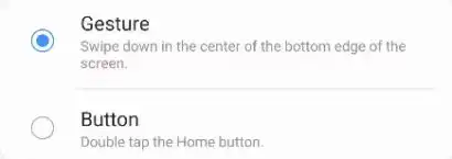 شما میتوانید انتخاب کنید که این حالت چگونه فعال شود. اگر ژستهای حرکتی را فعال کرده باشید، تنها گزینه “Gesture” در دسترس است. در غیر این صورت، میتوانید گزینه دیگری را انتخاب کنید تا با دو بار ضربه زدن روی دکمه هوم، حالت تکدستی فعال شود.