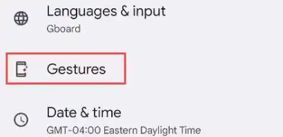 مرحله سوم: گزینه Gestures را انتخاب کنید.