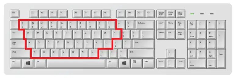 این نمادها روی کلیدهای حروف در سمت راست کیبورد قرار دارند. به مواردی مانند /، :، "، <، > کلیدهای نماد گفته میشود. سمبلها و نمادهای دیگری نیز وجود دارند که روی بخش اعداد کیبورد قرار گرفتهاند، شامل !، @، #، $، %، * و غیره. برای استفاده از این نمادها، کافی است همزمان با فشردن کلید مربوطه، کلید Shift را نیز نگه دارید. به عنوان مثال، وقتی Shift و T را به طور همزمان فشار میدهید، در واقع کلید "،" را تایپ میکنید. یکی دیگر از نمادهایی که با Shift میتوانید بنویسید، نماد @ است که با گرفتن Shift و عدد 2 قابل تایپ است.