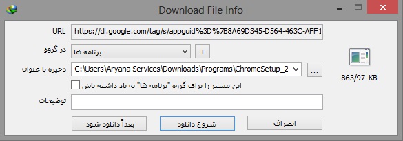 در ادامه شما به صفحه دیگری وارد می شوید که نصب کننده گوگل کروم (Installer) به صورت خودکار روی رایانه شما ذخیره خواهد شد.
