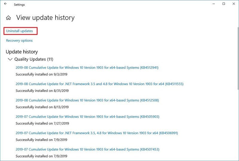 برای حذف به روزرسانی KB4512941 از ویندوز 10، از این مراحل پیروی کنید: