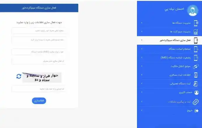 3. از منوی سمت راست، گزینه "فعالسازی دستگاه سیمکارتخور" را انتخاب کنید.