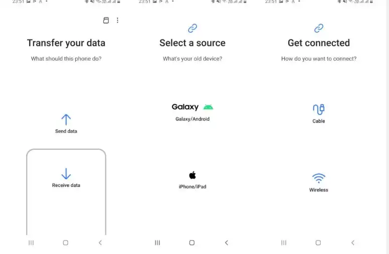 برنامه Smart Switch برای انتقال اطلاعات به گوشیهای سامسونگ طراحی شده است. این ابزار امکان انتقال اکانتها، فایلها و سایر دادهها را با کابل USB یا به صورت بیسیم فراهم میکند. کاربران غیر سامسونگ نیز میتوانند از این برنامه استفاده کنند.