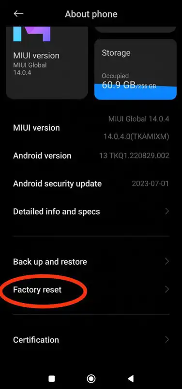 یکی از روش های که باعث رفع مشکلات نرم افزاری گوشی میشود ، ریست فکتوری یا بازگردانی گوشی به تنظیمات اولیه میباشد. با اینکار تمامی اطلاعات شما پاک میشود پس بهتر از قبل از انجام دادن حتما از اطلاعات مهم خود نسخه پشتیبانی تهیه نمایید. بعد از ریست فکتوری تمامی اطلاعات پاک میشوند و امکان بازیابی آن ها وجود ندارد. این روش راهکار نهایی بسیاری از مشکلات میباشد پس اگر تمامی روش های بالا را انجام دادید و مشکلتان حل نشد بهتر است قبل از مراجعه به نمایندگی تعمیرات xiaomi این روش را نیز انجام دهید.